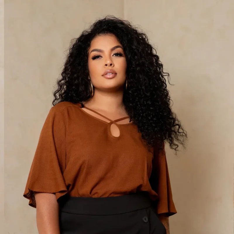Blusa Feminina Manga Curta Plus Size Ref 700884 Marrom