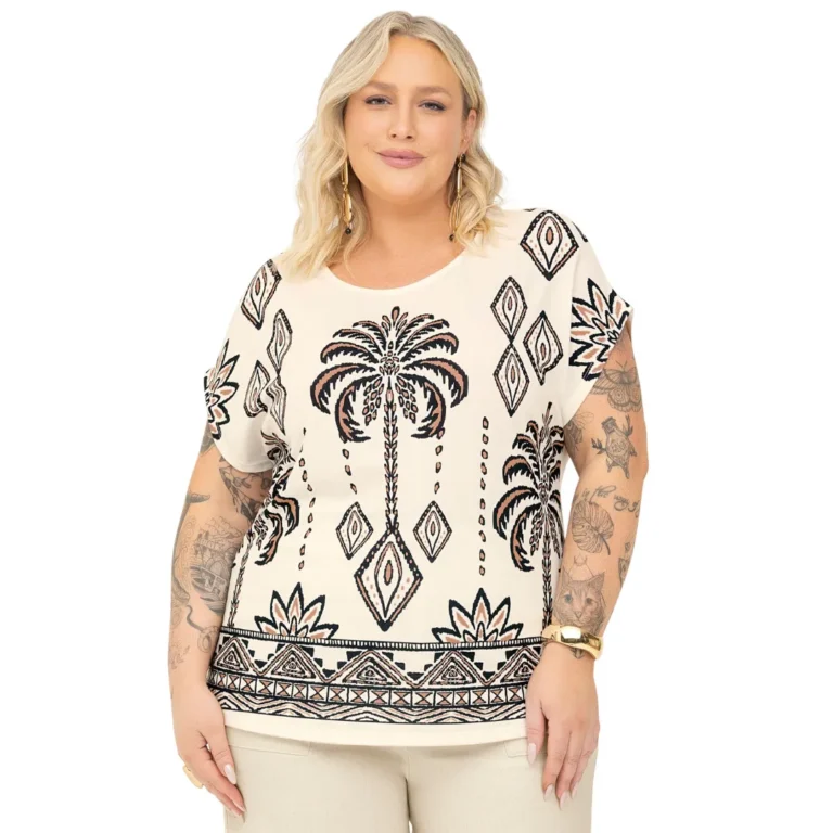 Blusa Feminina Manga Curta Plus Size Ref 700896 Estampa Bege