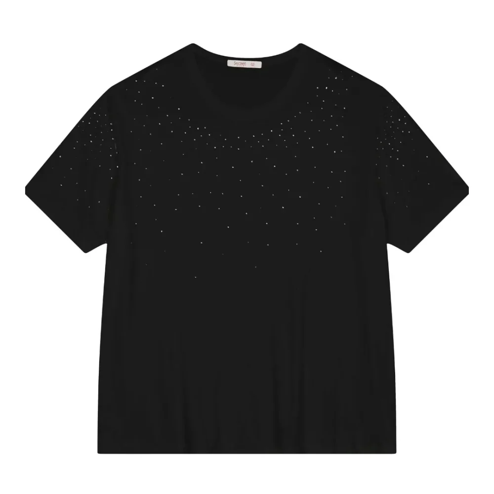 Blusa Feminina Manga Curta Plus Size Ref S01879 Preto