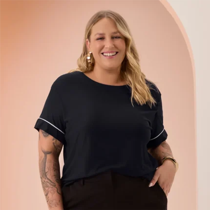 Blusa Feminina Plus Size Manga Curta C5137 Preto