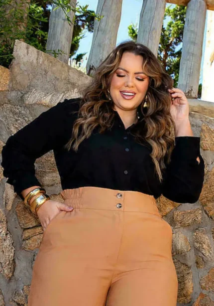 T-Shirt Feminina Plus Size Manga Curta Puggy Caramelo