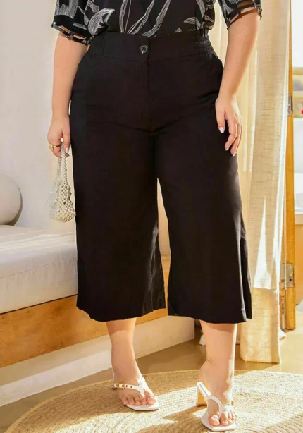 Calça Feminina Pantacourt Plus Size Ref 800267 Preto