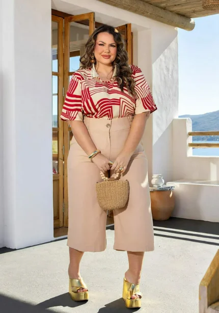 Calça Feminina Pantacourt Plus Size Ref 800267 Bege