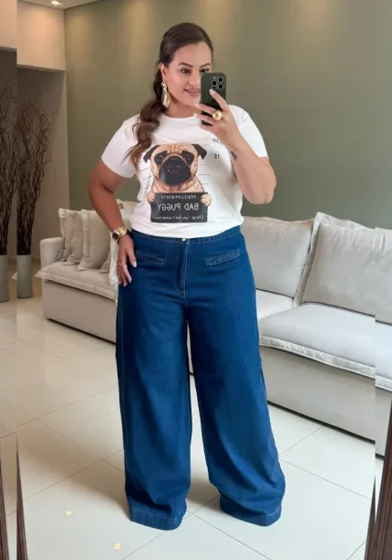 Calça Feminina Wide Leg Plus Size Ref 0143 Jeans