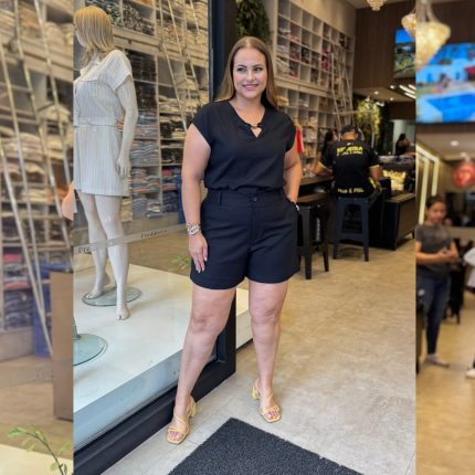 Conjunto Feminino Plus Size Blusa manga curta + Shorts Ref 12467 Preto