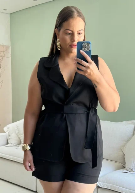 Conjunto Feminino Plus Size Colete + Shorts Ref 207275 Preto