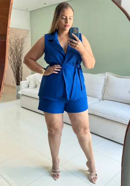Conjunto Feminino Plus Size Colete + Shorts Ref 207275 Royal