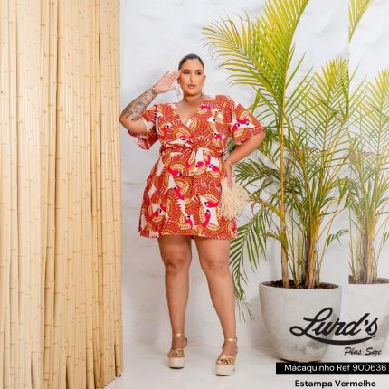 Macaquinho Feminino Plus Size Ref 900636 Vermelho