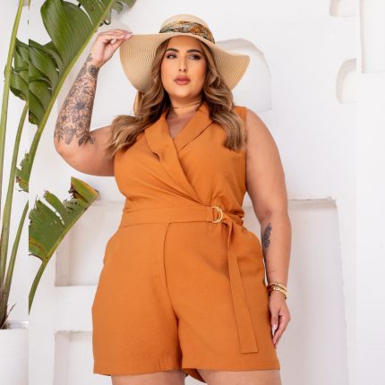 Macaquinho Feminino Plus Size Sem Manga Ref 900707 Telha
