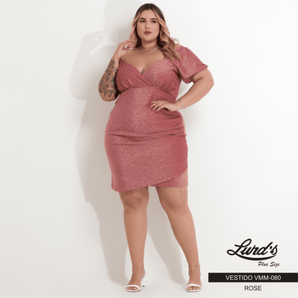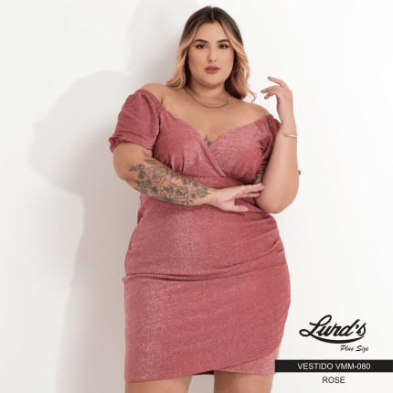 Vestido Plus Size Manga Curta Ref VMM-080 Rose