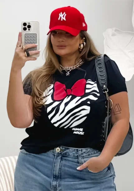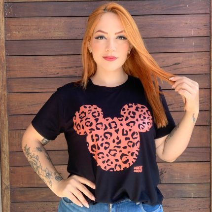 T-shirt Feminina Plus Size Manga Curta DISNEY-012 Preto CAMILA