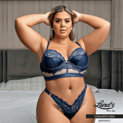 Conjunto Lingerie Plus Size Com Bojo Ref 4002 Marinho