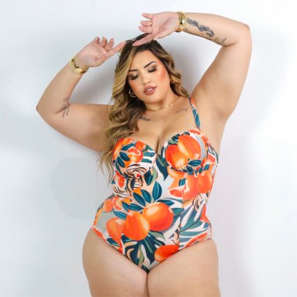 Maiô Plus Size Com Bojo Ref 00294 Estampa Laranja