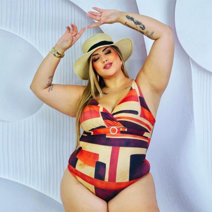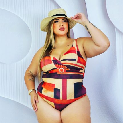 Maiô Plus Size Barriga Zero Ref 2372 Estampa Laranja