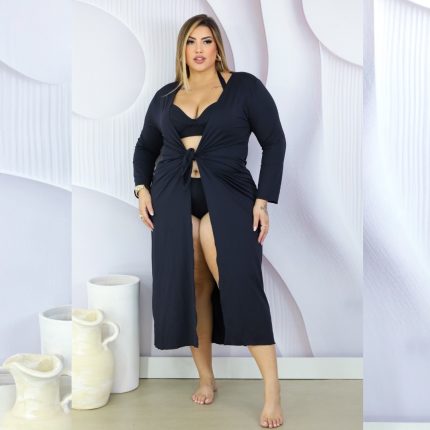 Saída de Praia Feminina Plus Size com Manga Ref 41244 Preto