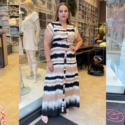 Vestido Mid Plus Size Sem Manga Ref 007184 Estampa Onça