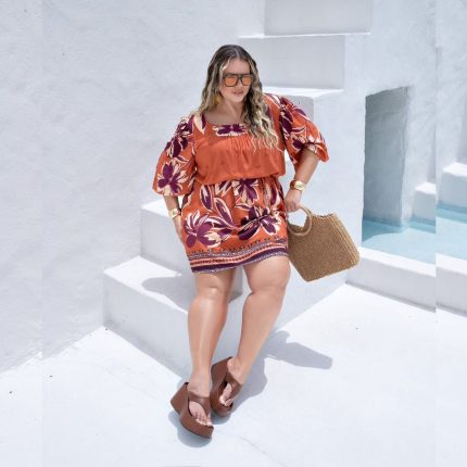 Vestido Plus Size Manga Curta 900748 Estampa Telha