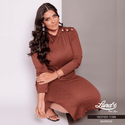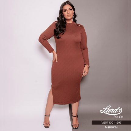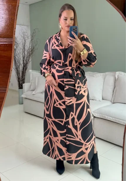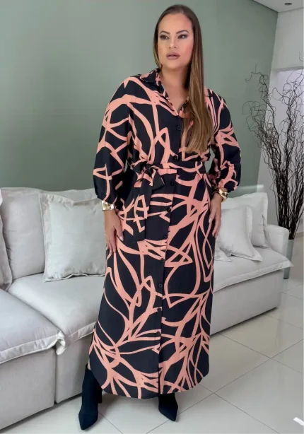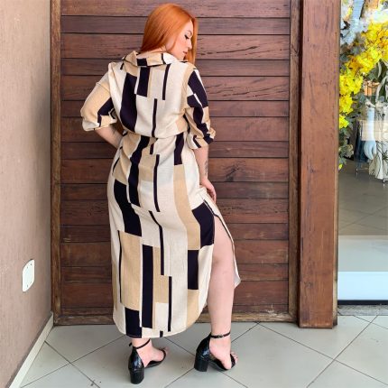 Vestido Longo Plus Size Manga 3/4 Estampa Ref 106322 Marrom