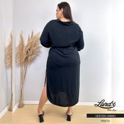 Vestido Plus Size Manga Curta Ref 206681 Preto