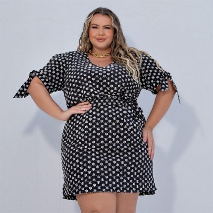 Vestido Plus Size Manga Curta Ref 900761 Preto
