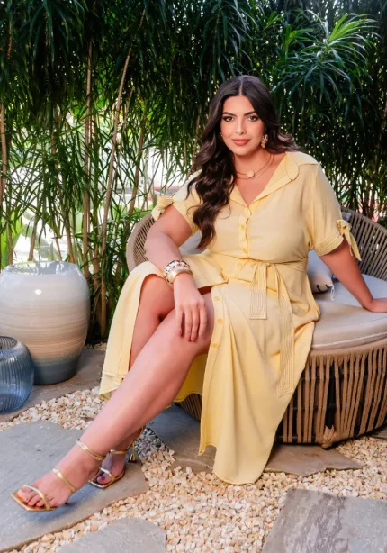 Vestido Mid Manga Curta Plus Size Ref 12852 Amarelo