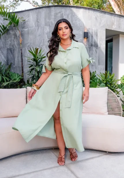 Vestido Mid Manga Curta Plus Size Ref 12852 Verde