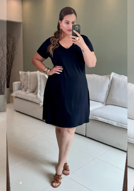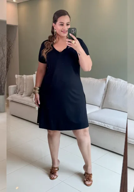 Vestido Plus Size Manga Curta Ref VMM-003 Preto