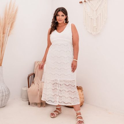Vestido Longo Plus Size Sem Manga Ref 900776 Bege