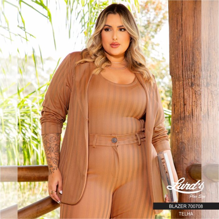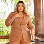 Blazer Feminino Alfaiataria Plus Size Ref 700394 Pinhão NINA
