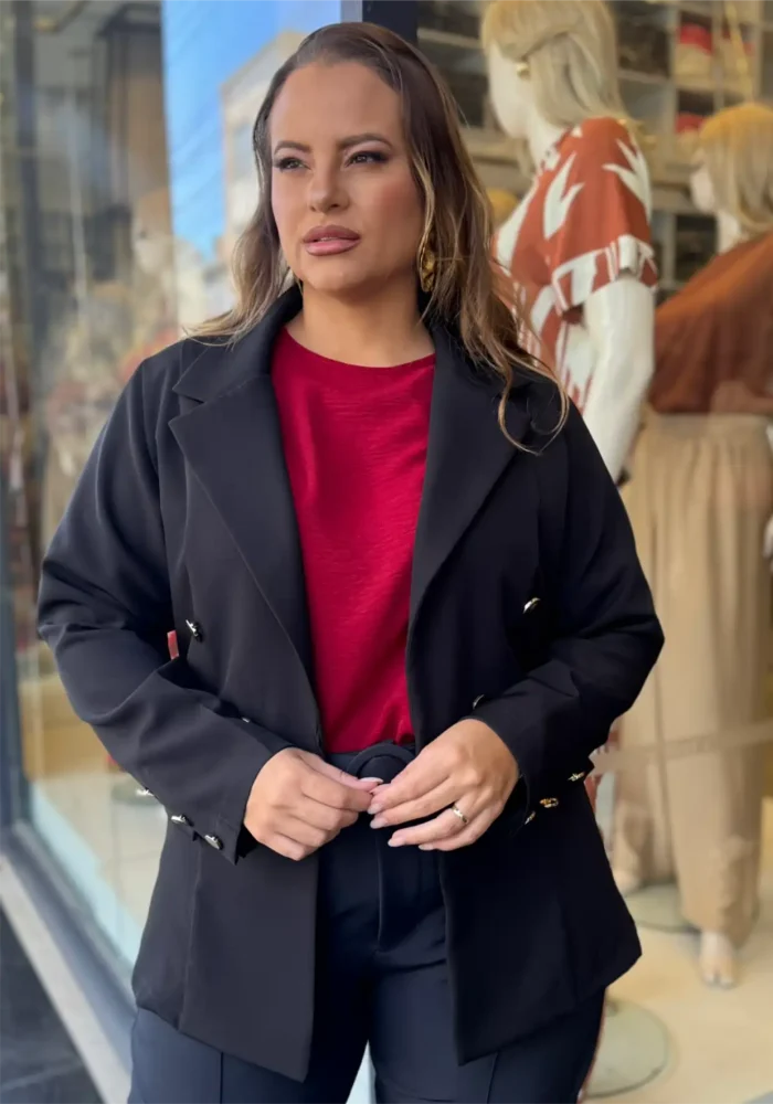 Um blazer pensado para realçar a beleza da mulher plus size com sofisticação, conforto e presença marcante. Com modelagem alfaiatada e detalhes refinados, essa peça é ideal para compor looks poderosos no trabalho, eventos ou produções casuais com estilo.