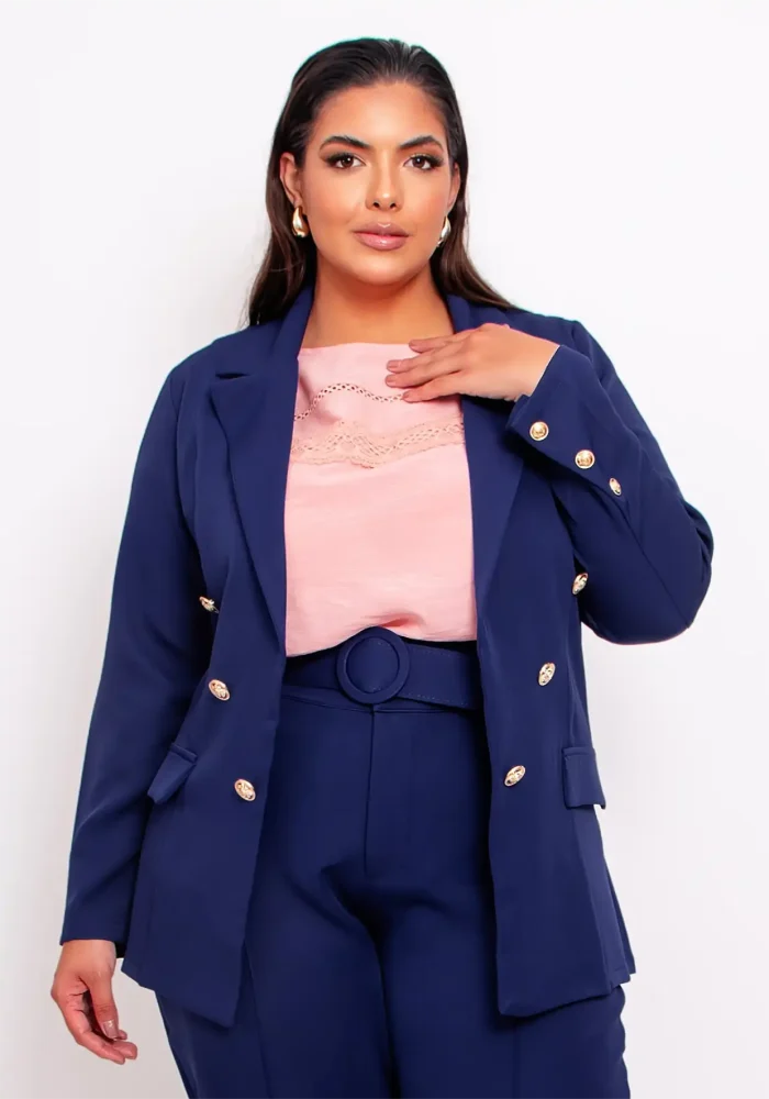 Um blazer pensado para realçar a beleza da mulher plus size com sofisticação, conforto e presença marcante. Com modelagem alfaiatada e detalhes refinados, essa peça é ideal para compor looks poderosos no trabalho, eventos ou produções casuais com estilo.