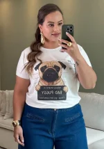 A estampa do pug “bad boy” dá um toque descontraído ao visual, sem perder o estilo! Perfeita para o dia a dia, passeios e até aquele look comfy fashion que a gente ama! 😍
