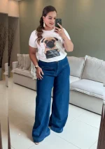Confeccionada em viscolycra premium, ela tem toque super macio, caimento leve e elástico que acompanha o corpo com muito conforto. A modelagem foi pensada especialmente para vestir bem do 46 ao 60, com mangas confortáveis, gola redonda e comprimento ideal para usar com jeans, pantalonas ou até saias.