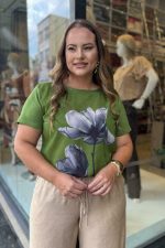 A Blusa Plus Size Ref. 12690 é perfeita para quem ama conforto sem abrir mão de elegância. Confeccionada em tecido leve e com toque suave, ela possui modelagem soltinha, mangas curtas e estampa floral exclusiva que traz um ar moderno e feminino ao visual.