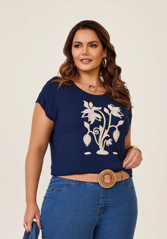 Blusa Feminina Manga Curta Plus Size Ref 52140097 Marinho