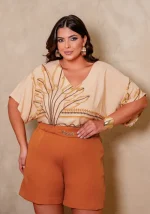Blusa Feminina Manga Curta Plus Size Ref 700866 Bege