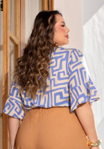 Blusa Feminina Plus Size Manga Curta Ref 222994 Estampa Azul