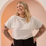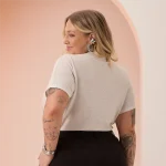 Blusa Feminina Plus Size Manga Curta C5137 Off White