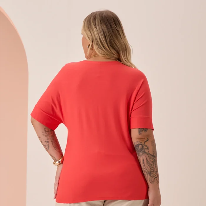 Blusa Feminino Plus Size Manga Curta Ref 700779 Estampa Salmão