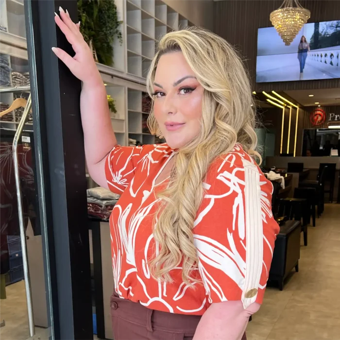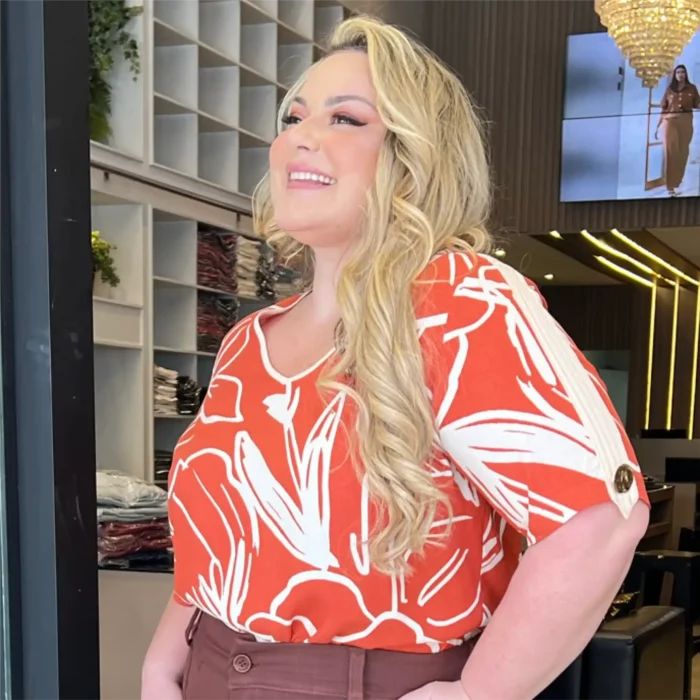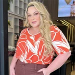 A Blusa Feminina Plus Size Manga Curta 12543  combina estilo e conforto para valorizar sua silhueta com elegância. Feita em tecido leve, possui um caimento fluido e toque macio. A estampa telha traz sofisticação e versatilidade, perfeita para diversas ocasiões. Seu design moderno com mangas curtas proporciona frescor e liberdade de movimento.