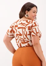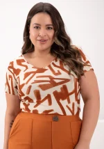 Blusa Feminina Plus Size Manga Curta Ref 69199 Bege Telha
