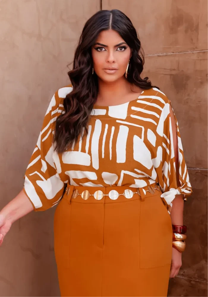Blusa Feminina Plus Size Manga Curta ref 700849 Mostarda