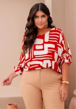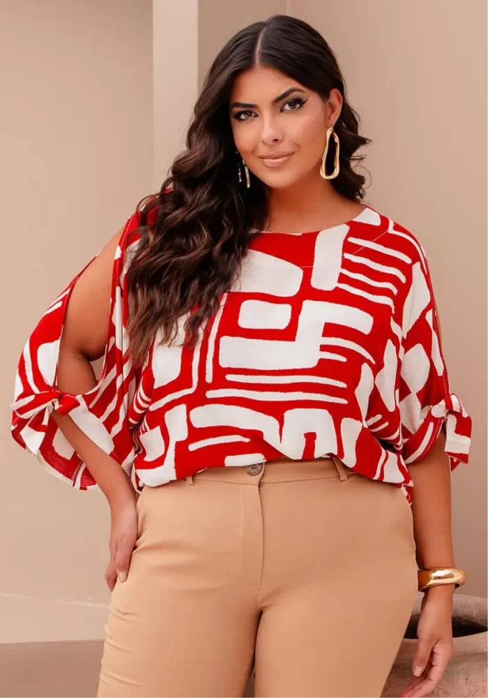 Blusa Feminina Plus Size Manga Curta ref 700849 Vermelho