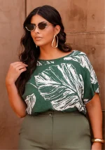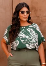 Blusa Feminina Plus Size Manga Curta ref 700854 Estampa Verde