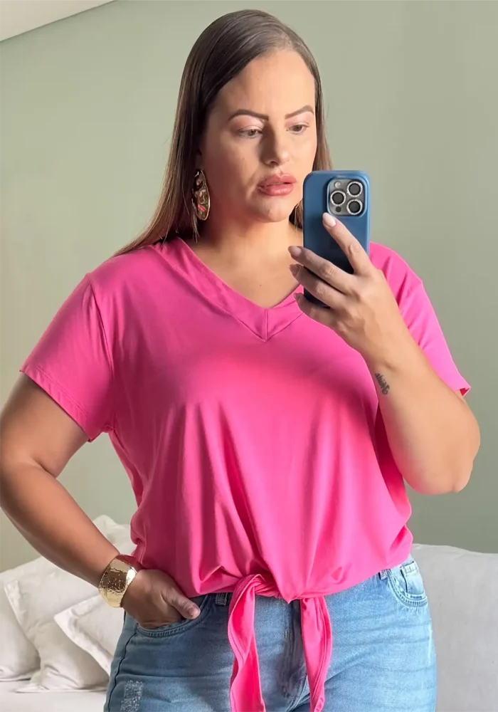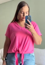 Blusa Feminina Plus Size Manga Curta Ref BMM-008 Rosa