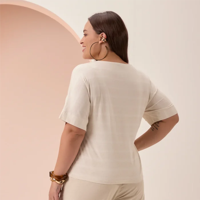 Blusa Feminina Plus Size Manga Curta Ref C5141 Off White