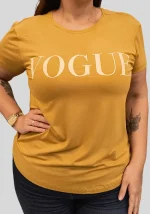 T-shirt Feminina Plus Size Manga Curta Vogue Camelo