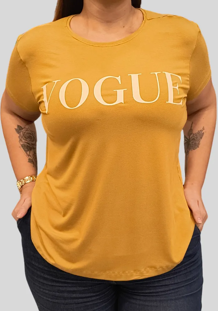 A t-shirt básica que nunca erra! Confortável, estilosa e com aquela pegada fashionista, traz a estampa VOGUE que é puro poder e atitude. Feita em malha macia, veste super bem e combina fácil com jeans, alfaiataria ou até uma saia mais descolada.