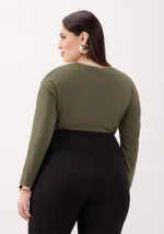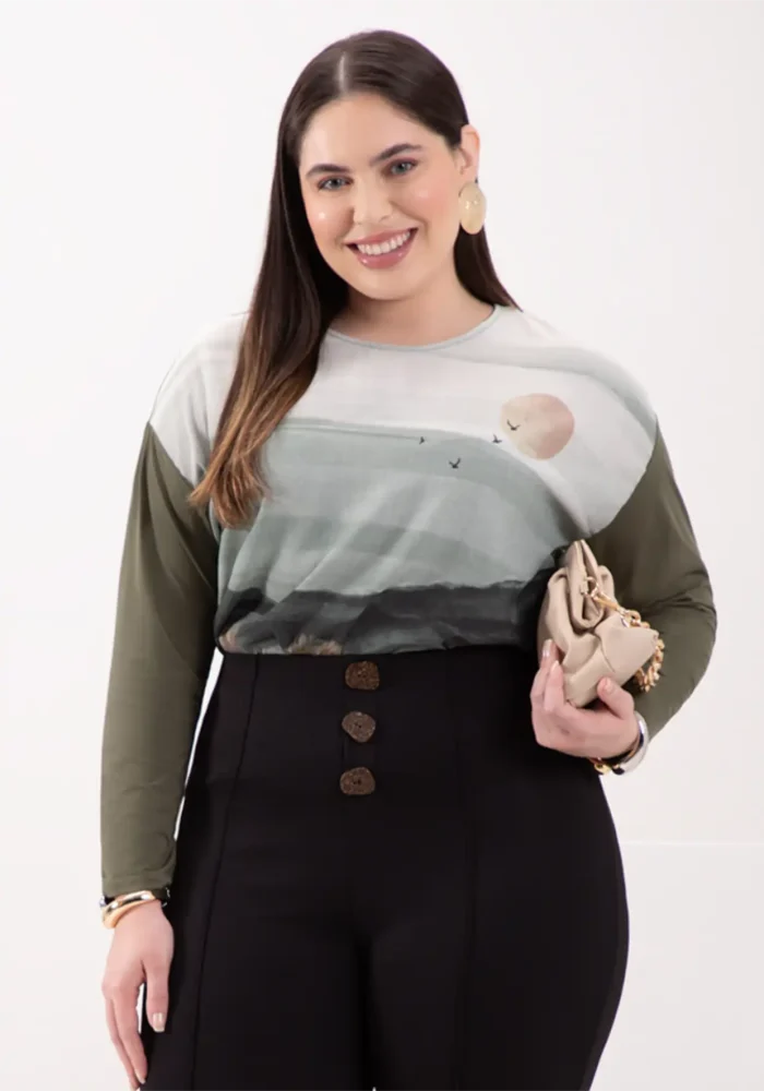 Blusa Feminina Plus Size Manga Longa Ref 69169 Verde
