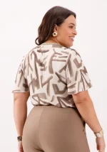 Blusa Feminina Plus Size Manga Curta Ref 69167 Estampa Bege